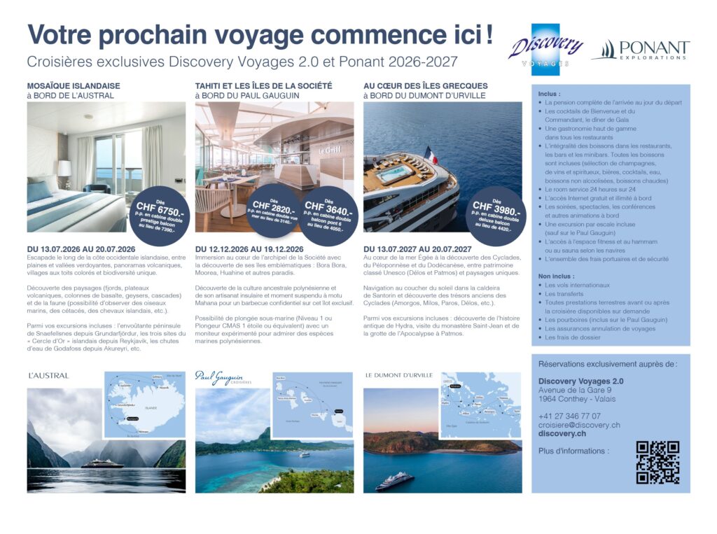 Notre passion pour les voyages, ainsi que le professionnalisme de notre équipe expérimentée sont à votre service, afin de vous confectionner vos plus belles vacances. Notre page facebook et Instagram : Discovery Voyages 2.0 contiennent une foule d’idées, de photos et d’expériences qui vous seront certainement utiles lors du choix de la destination de vos rêves.